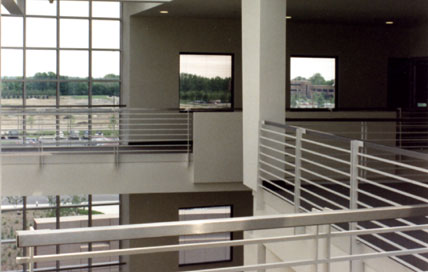 The 3-story Bysis office building is a 150,000 square foot suburban structure designed to serve multiple tenants. Special attention was given to developing a strong architectural identity. The building is of steel frame construction and features intersecting planes of a variety of materials, including brick, glass, and pre-cast concrete. The interior is equally engaging with soaring ceilings, skylights, and catwalk style walkways.