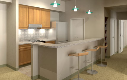 Kramer Place Condominiums A 46-unit mixed-use retail and residentail condominium, Kramer Place acts as an architectural transition from the boxy industrial buildings to its south, to the residential-scaled buildings to its north. Utility-sized brick and large banks of square windows, emulate the factories and manufacturing plants that stood in the area for over 100 years. The northern portion of the building has lower sloped roofs, dormers, lighter colored brick and accent bands which effectively relate to the residential scale of the neighborhood. By combining a variety of materials, textures, details and fenestration, the architecture of Kramer Place Condominiums weaves together industrywith artistry, the past with the present. For more information about Kramer Place Condominiums, please visit www.kramerplace.com Digital imaging courtesy of AnderleStudios, LLC. Copyright 2007. All Rights Reserved |